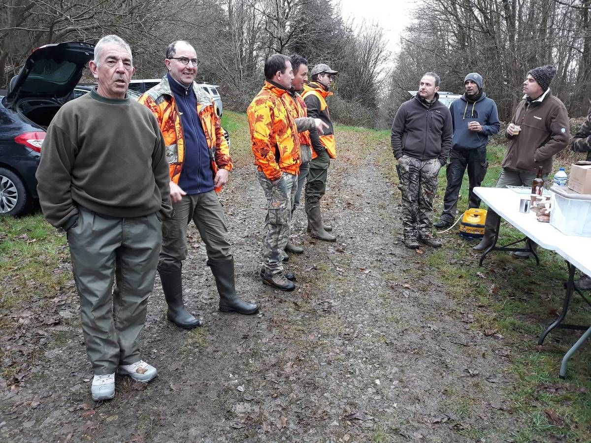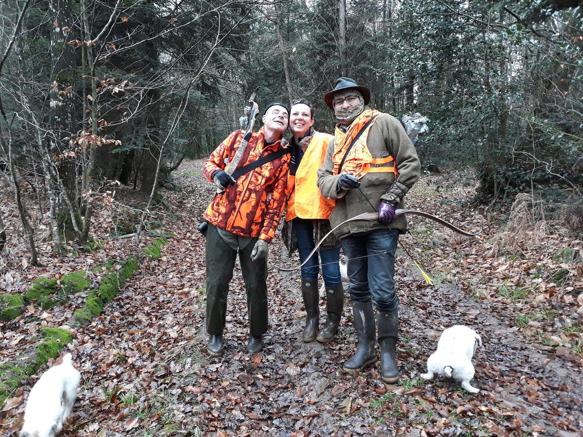 Dimanche s’est tenue une belle chasse organisée par Gilles. Une quinzaine d’archers se sont rassemblés, ont enfilé leur gilet orange fluo et se sont munis de leur pibole. Et tout le monde a pris son poste…
